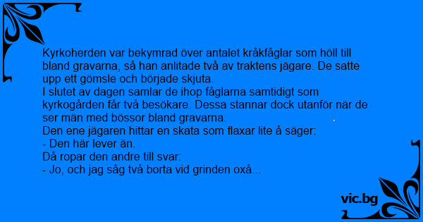 Kyrkoherden var bekymrad över antalet kråkfåglar som höll till bland gravarna, så han anlitade två av traktens jägare. De satte upp ett gömsle och började skjuta.