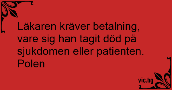 Läkaren kräver betalning, vare sig han tagit död på sjukdomen eller patienten.