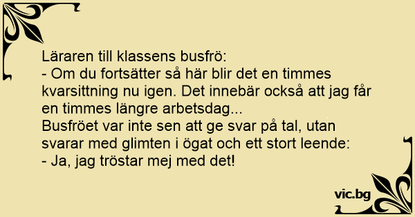 - Om du fortsätter så här blir det en timmes kvarsittning nu igen. Det innebär också att jag får en timmes längre arbetsdag...