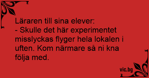 - Skulle det här experimentet misslyckas flyger hela lokalen i uften. Kom närmare så ni kna följa med.