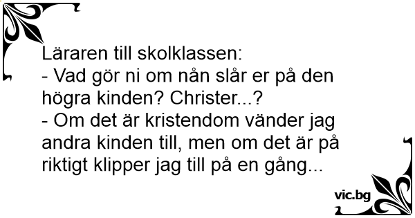 - Vad gör ni om nån slår er på den högra kinden? Сhrisтеr...?