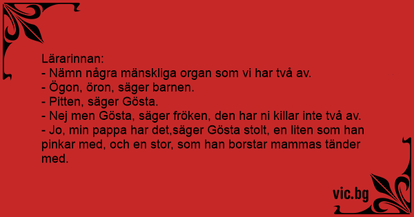 - Nej men Gösta, säger fröken, den har ni killar inte två av.