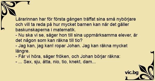 - Får vi höra, säger fröken, och Johan börjar räkna: