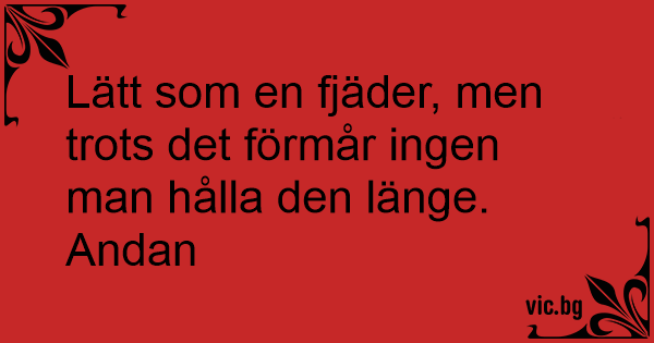 Lätt som en fjäder, men trots det förmår ingen man hålla den länge.