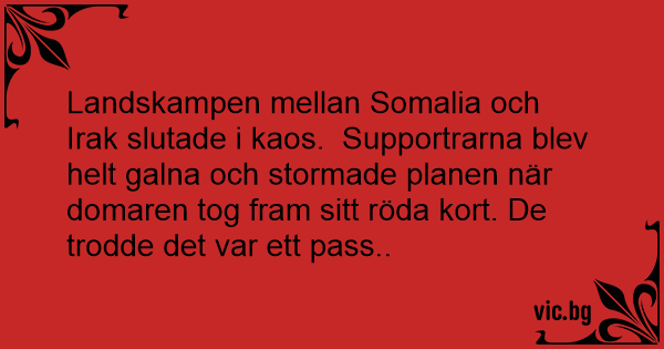Landskampen mellan Somalia och Irak slutade i kaos.  Supportrarna blev helt galna och stormade planen när domaren tog fram sitt röda kort. De trodde det var ett pass..