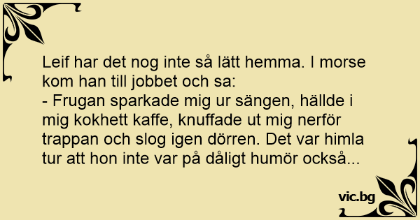 Leif har det nog inte så lätt hemma. I morse kom han till jobbet och sa:
