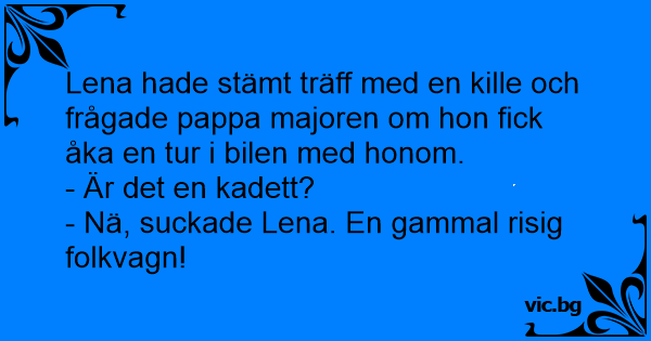 Lena hade stämt träff med en kille och frågade pappa majoren om hon fiск åka en tur i bilen med honom.