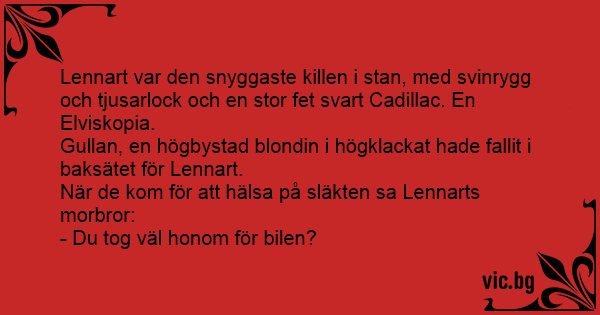 Lennart var den snyggaste killen i stan, med svinrygg och tjusarlock och en stor fet svart Cadillac. En Elviskopia.