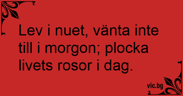 Lev i nuet, vänta inte till i morgon; plocka livets rosor i dag.