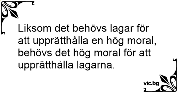 Liksom det behövs lagar för att upprätthålla en hög moral, behövs det hög moral för att upprätthålla lagarna.