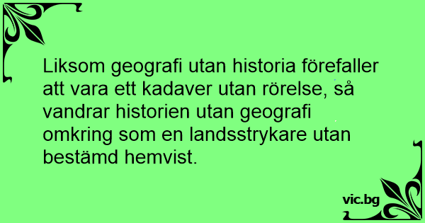 Liksom geografi utan historia förefaller att vara ett kadaver utan rörelse, så vandrar historien utan geografi omkring som en landsstrykare utan bestämd hemvist.