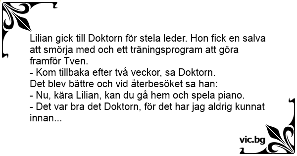 Mannen till läkarn: - Tror du jag kan spela fiol när armen är läkt? - Inga problem, svarade läkaren - Vad bra, för det kunde jag inte innan