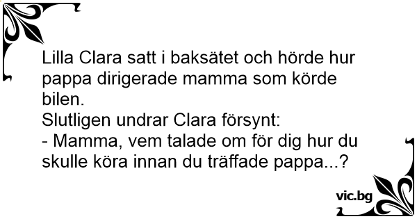 Lilla Clara satt i baksätet och hörde hur pappa dirigerade mamma som körde bilen.