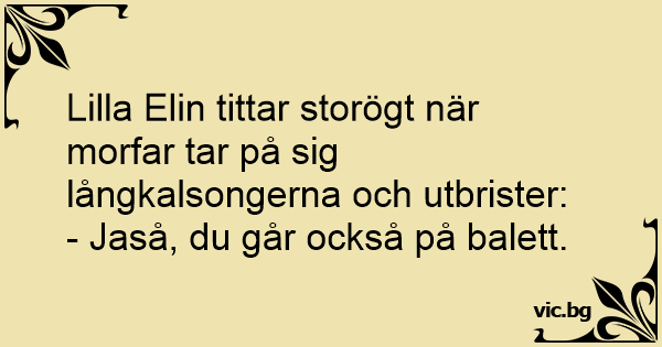 Lilla Elin tittar storögt när morfar tar på sig långkalsongerna och utbrister: - Jaså, du går också på balett.