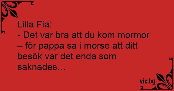 - Det var вrа att du kom mormor – för pappa sa i morse att ditt besök var det enda som saknades…