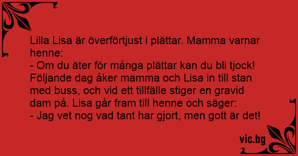 Följande dag åker mamma och Lisa in till stan med buss, och vid ett tillfälle stiger en gravid dam på. Lisa går fram till henne och säger:
