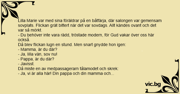- Du behöver inte vara rädd, tröstade modern, för Gud vakar över oss här också.