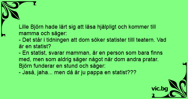 - En statist, svarar mamman, är en person som bara finns med, men som aldrig säger något när dom andra pratar.