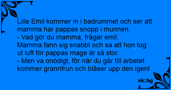 Lille Emil kommer in i badrummet och ser att mamma har pappas snopp i munnen.