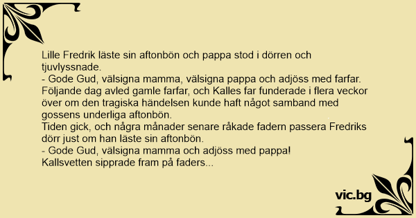 Tiden gick, och några månader senare råkade fadern passera Fredriks dörr just om han läste sin aftonbön.