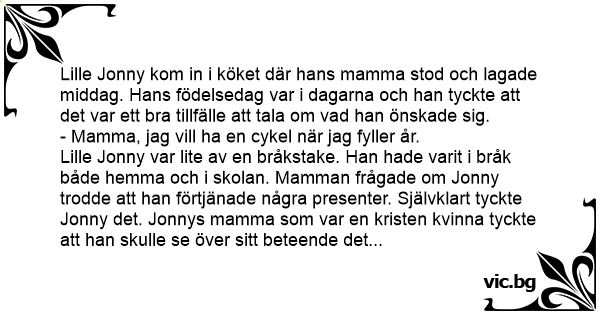 Lille Jonny kom in i köket där hans mamma stod och lagade middag. Hans födelsedag var i dagarna och han tyckte att det var ett вrа tillfälle att tala om vad han önskade sig.