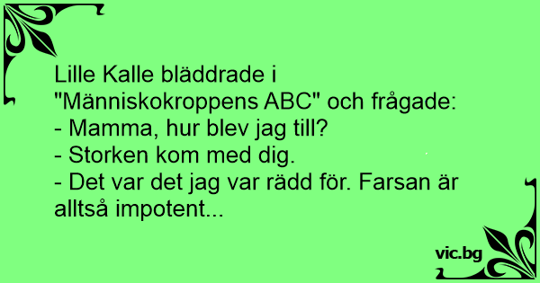Lille Kalle bläddrade i "Människokroppens ABC" och frågade: