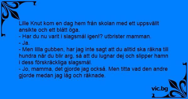 Lille Knut kom en dag hem från skolan med ett uppsvällt ansikte och ett blått öga.