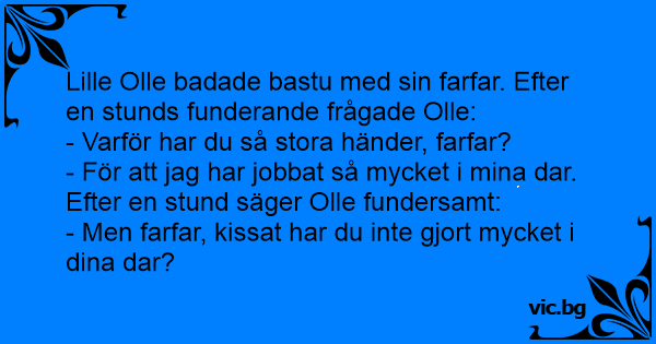 Lille Olle badade bastu med sin farfar. Efter en stunds funderande frågade Olle: