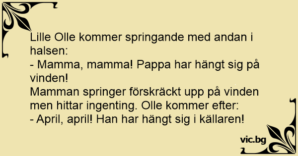 - April, april! Han har hängt sig i källaren!