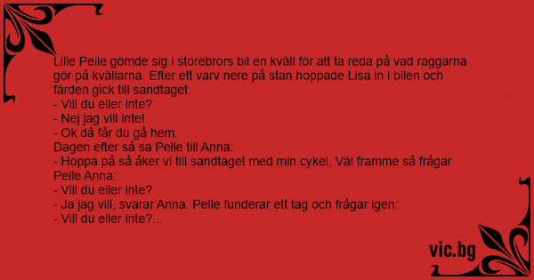 - Ja jag vill, svarar Anna. Pelle funderar ett tag och frågar igen: