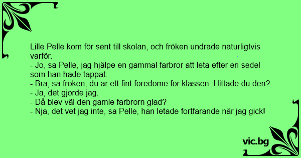 Lille Pelle kom för sent till skolan, och fröken undrade naturligtvis varför.