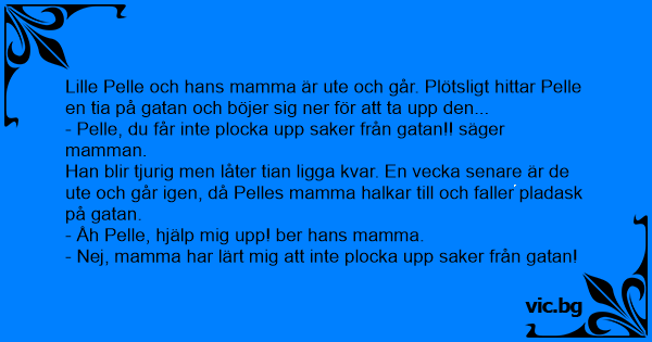 - Pelle, du får inte plocka upp saker från gatan!! säger mamman.
