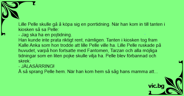 Lille Pelle skulle gå å köpa sig en porrtidning. När han kom in till tanten i kiosken så sa Pelle:
