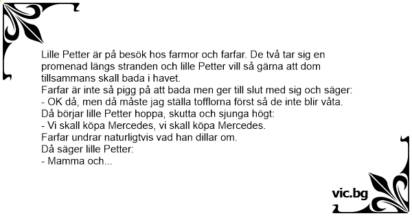 - Mamma och pappa har sagt att när farfar ställer tofflorna skall vi köpa en Mercedes.