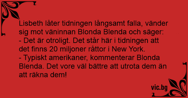- Typiskt amerikaner, kommenterar Blonda Blenda. Det vore väl bättre att utrota dem än att räkna dem!