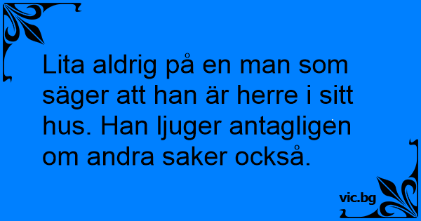 Lita aldrig på en man som säger att han är herre i sitt hus. Han ljuger antagligen om andra saker också.