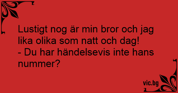 Lustigt nog är min bror och jag lika olika som natt och dag!