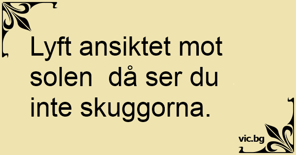 Lyft ansiktet mot solen då ser du inte skuggorna.