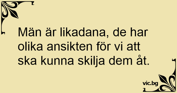 Män är likadana, de har olika ansikten för vi att ska kunna skilja dem åt.