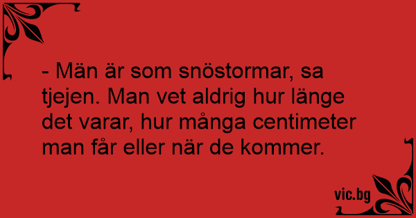 - Män är som snöstormar, sa tjejen. Man vet aldrig hur länge det varar, hur många centimeter man får eller när de kommer.