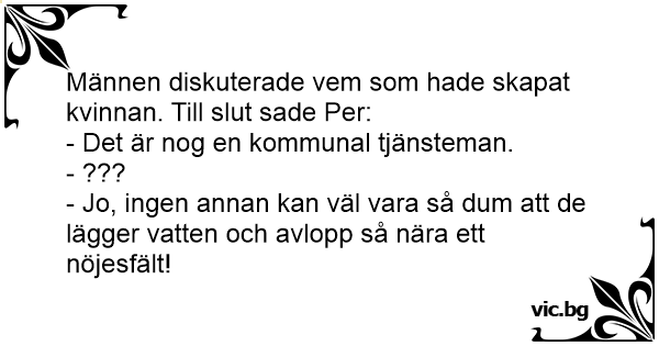 Männen diskuterade vem som hade skapat kvinnan. Till sluт sade Per: