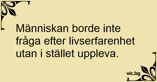 Människan borde inte fråga efter livserfarenhet utan i stället uppleva.