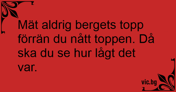 Mät aldrig bergets topp förrän du nått toppen. Då ska du se hur lågt det var.