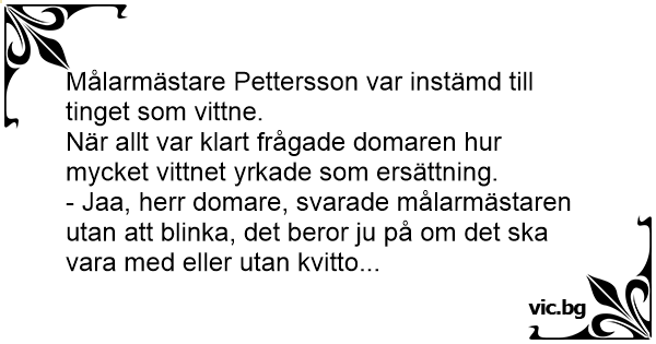 - Jaa, herr domare, svarade målarmästaren utan att blinka, det beror ju på om det ska vara med eller utan kvitto...
