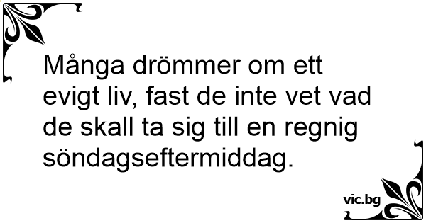 Många drömmer om ett evigt liv, fast de inte vet vad de skall ta sig till en regnig söndagseftermiddag.