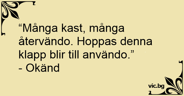 “Många kast, många återvändo. Hoppas denna klapp blir till användo.”