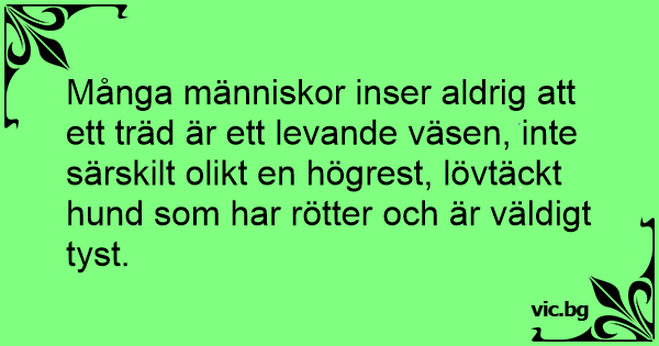 Många människor inser aldrig att ett träd är ett levande väsen, inte särskilt olikt en högrest, lövtäckt hund som har rötter och är väldigt tyst.