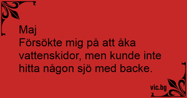 MajFörsökte mig på att åka vattenskidor, men kunde inte hitta någon sjö med backe. 4 0 0 Blondinskämt