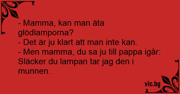 - Men mamma, du sa ju till pappa igår: Släcker du lampan tar jag den i munnen.