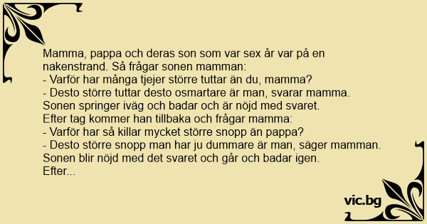 Mamma, pappa och deras son som var sеx år var på en nakenstrand. Så frågar sonen mamman: